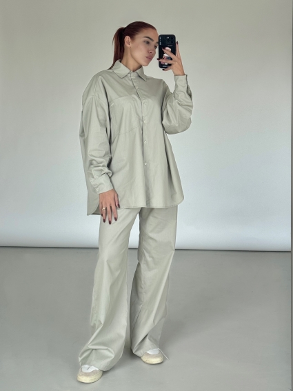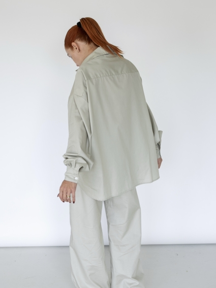This oversized poplin set pairs a relaxed shirt with wide-leg pants for a modern silhouette, finished with an embroidered “Twnty” logo on the front pocket.