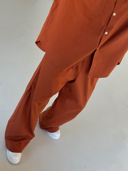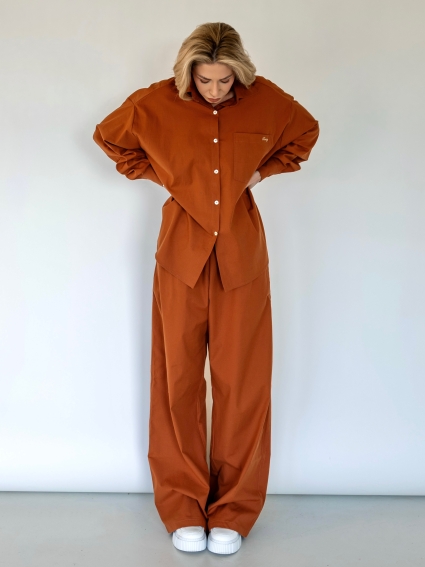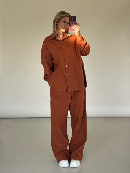 This oversized poplin set pairs a relaxed shirt with wide-leg pants for a modern silhouette, finished with an embroidered “Twnty” logo on the front pocket.